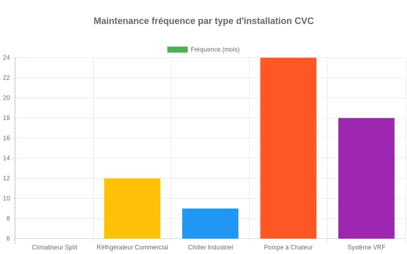La réglementation établit un calendrier précis pour les contrôles d'étanchéité, directement lié à la charge en équivalent CO2 de l'installation. Plus le potentiel de réchauffement global (GWP) du fluide et sa quantité sont élevés, plus les contrôles doivent être fréquents. Voici un récapitulatif des périodicité maintenance réglementaire CVC à respecter :